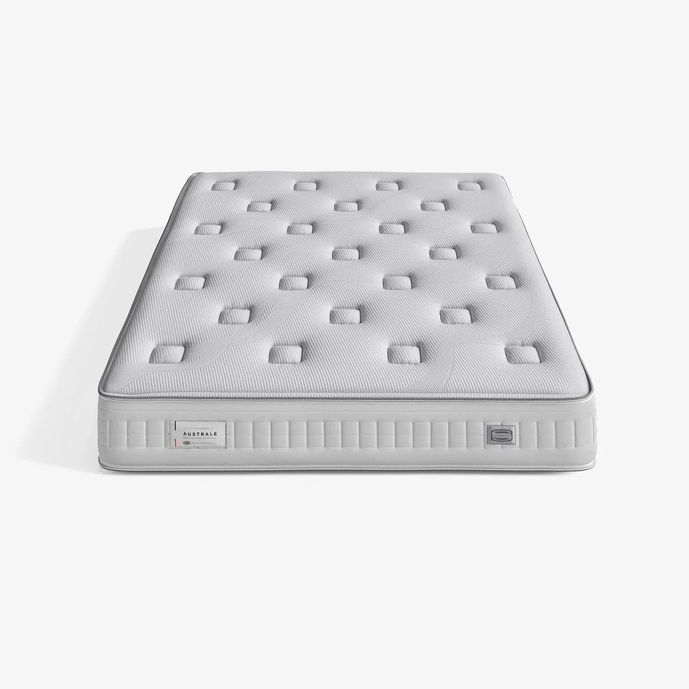 Avec ses 27 cm d’épaisseur, le matelas Australe offre un accueil tonique et un soutien extra-ferme. Sa technologie hybride associe ressorts ensachés Sensoft® et mousse de confort ferme pour une bonne stabilité et une réduction des micro-mouvements.